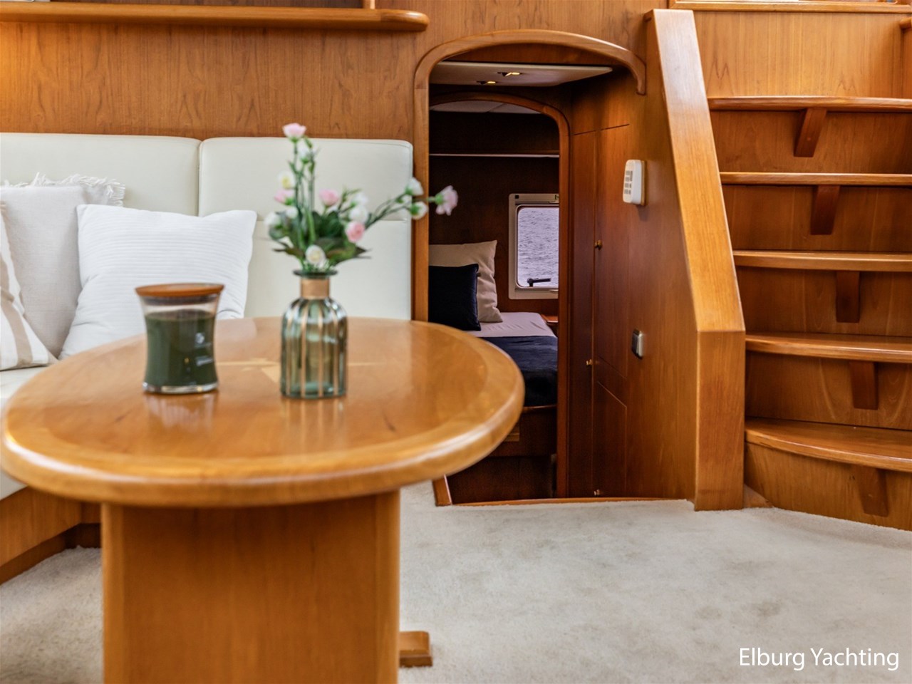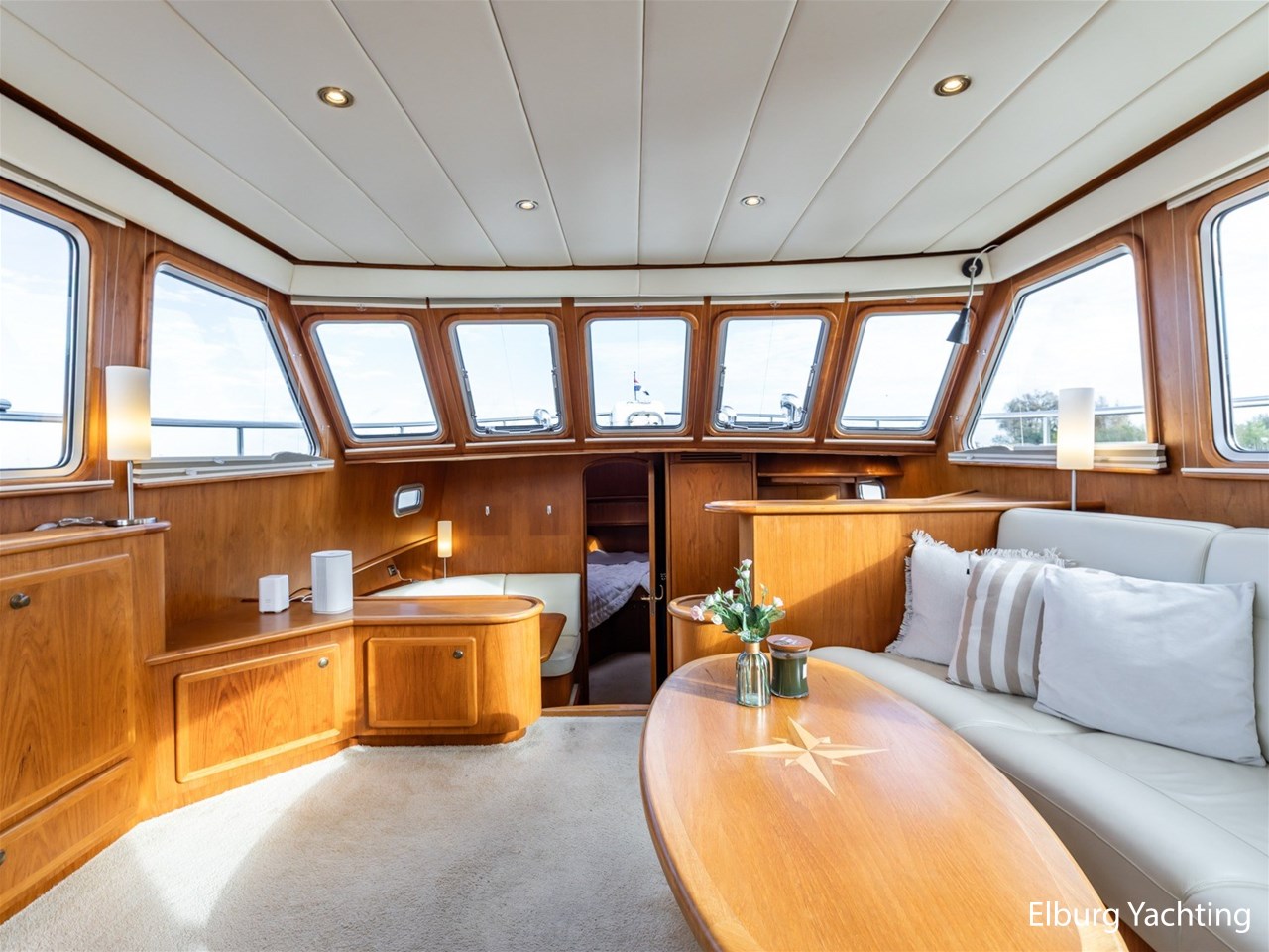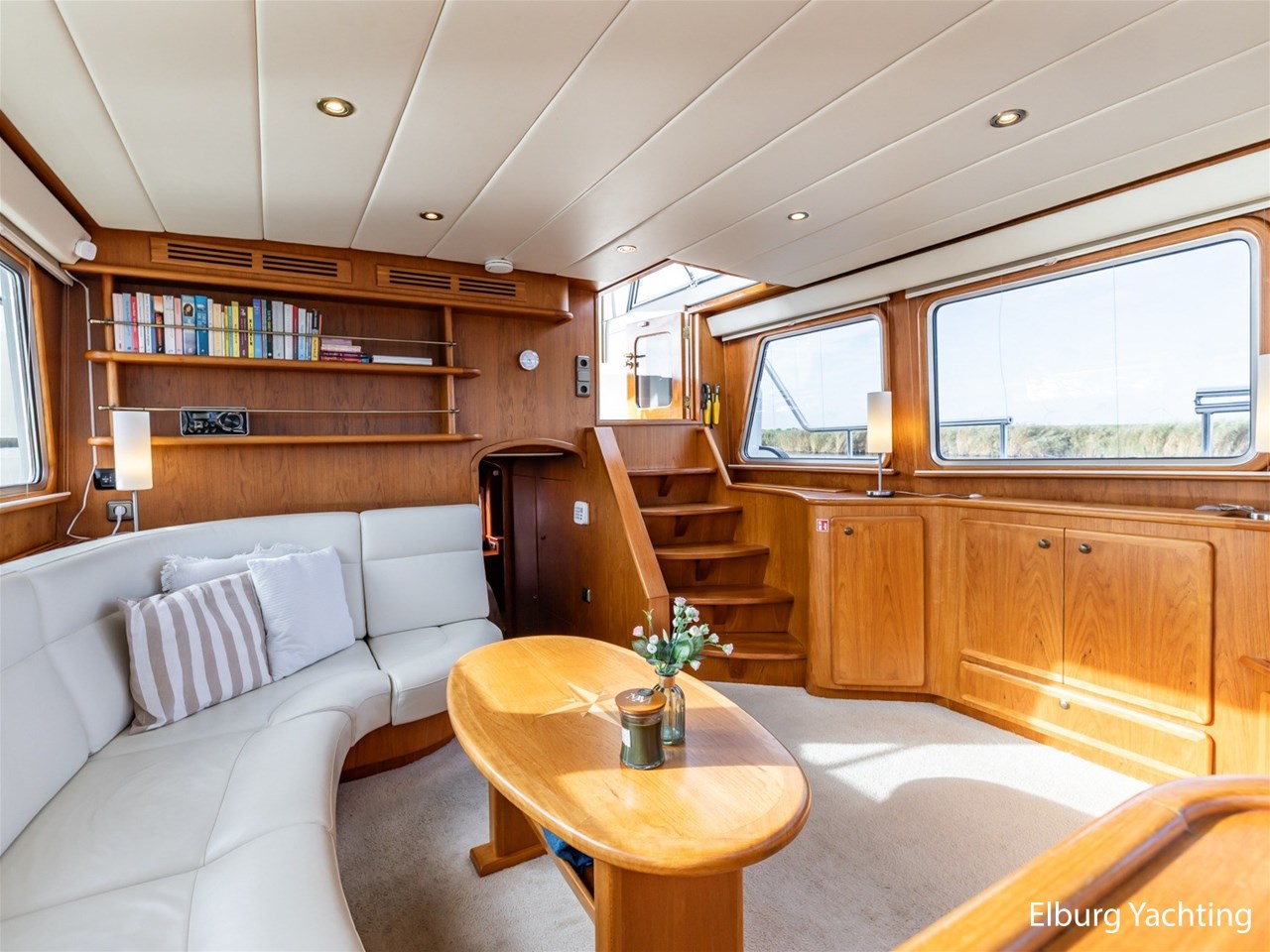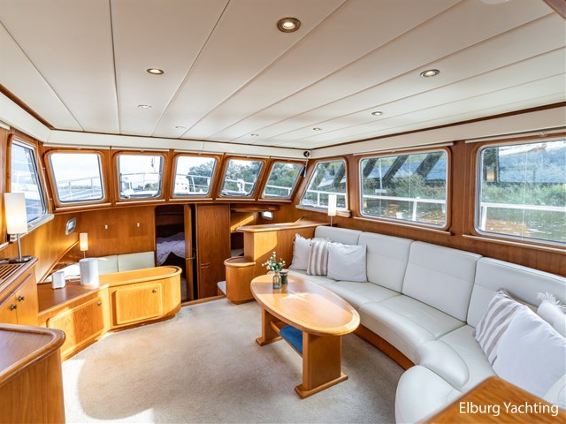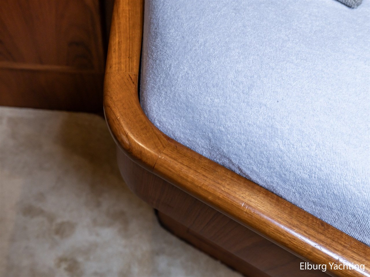 - Hoogwaardig teak scheepsinterieur met lederen bekleding op de binnen banken