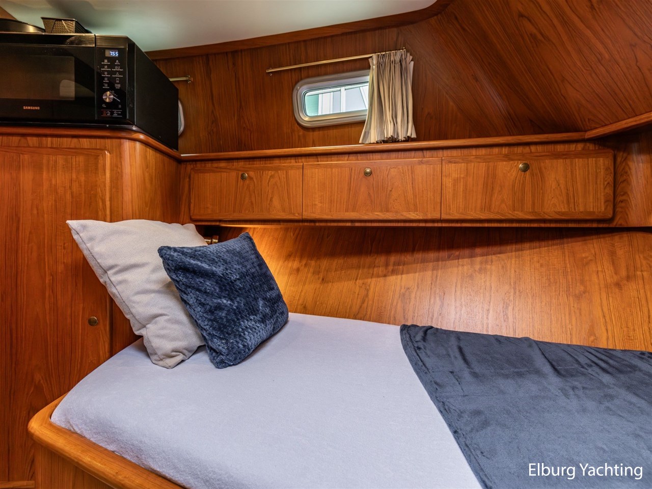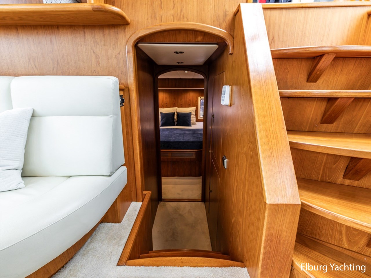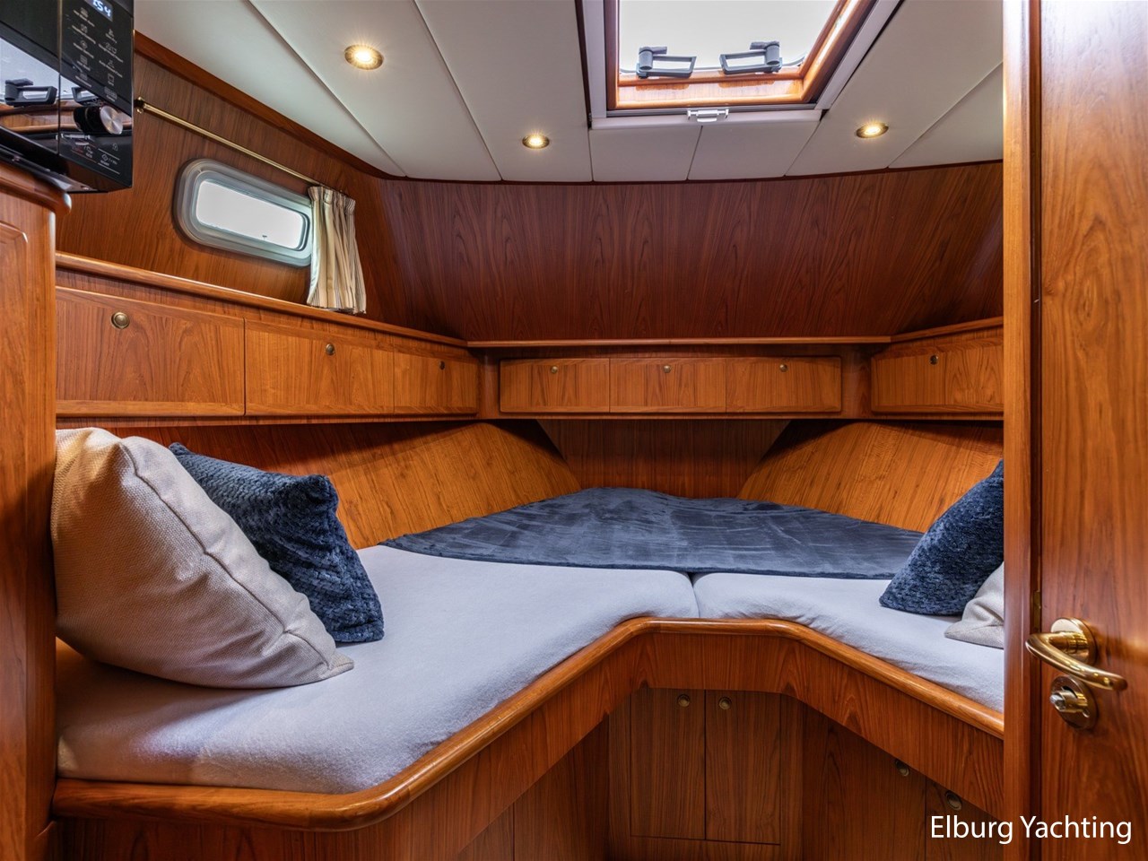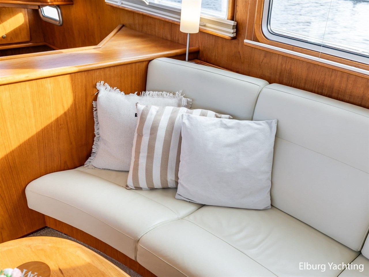 - Hoogwaardig teak scheepsinterieur met lederen bekleding op de binnen banken