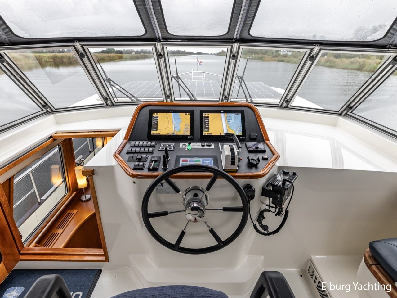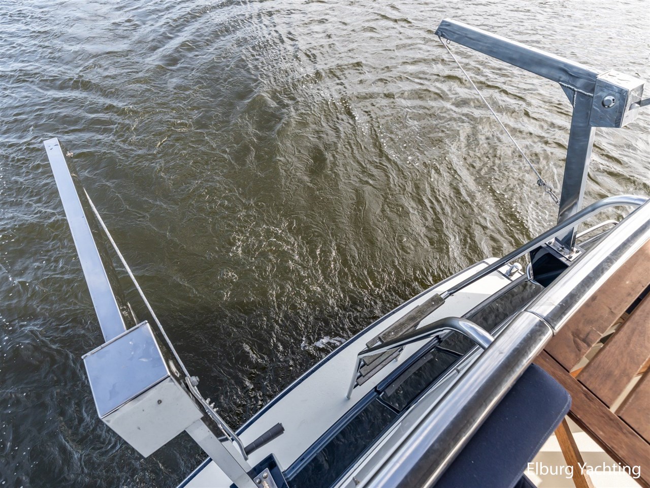 Deze Vripack Spiegelkotter 14.50 is voorzien van: Volledige tent over achterdek en stuurstand, verwarming bij de stuurstand, hydraulisch klapbare radarbeugel (min. doorvaarthoogte 3,20 m), buitenverlichting, vaste meevaarstoel, 3 x 2-armige ruitenwissers met intervalautomaat, degelijke ovale r.v.s. reling rondom + vaste verschansing, 1 x TV in salon + 1 x TV in achterhut, Bosch vaatwasser (2022), AIS klasse B, Victron Cerbo met mogelijkheid tot uitlezen op telefoon, plissé gordijnen, zonnepanelen 3 x 240Wp met Victron MPPT solaromvormer, vaste banken op achterdek met daarin bergruimte, blinds rondom salonramen, alle verlichting uitgevoerd in LED, Bosch was-droog combi aan boord.