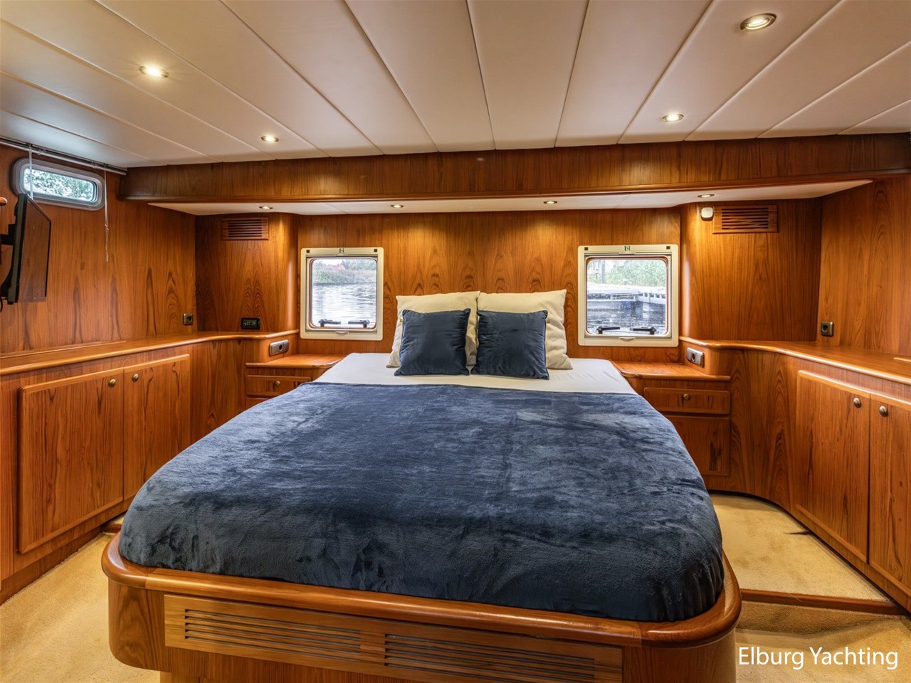 Zeer hoogwaardig gebouwde rondspant gejoggelde spiegelkotter van jachtwerf Het Oude Maasje in Waspik met het ontwerp van Vripack Design. Het schip is van bouwjaar 2005 en is eind 2006 in de vaart genomen. Het houtwerk in het interieur is in goede staat en de details laten laat nog echt vakwerk zien. De machinekamer met alle techniek is goed toegankelijk. Het geluid van de aandrijving tijdens het varen is minimaal door een goede isolering. De uitrusting is zeer compleet om zowel lange vaartochten op zee te maken evenals binnen door Franse kanalen te varen. Het schip is ook uitermate geschikt voor permanente bewoning vanwege zijn uitstekende isolatie, dubbel glas, airco, warmwater CV en boiler. Het schip is door de eigenaar tot in detail onderhouden doormiddel van gepland periodiek onderhoudsschema. Recent onderhoud en doorgevoerde vernieuwingen zijn een opnieuw gespoten romp (2025), antifouling (2025), een nieuw toilet achter (2024), nieuwe verstuivers (2023), nieuwe schroefasafdichtingen (2023), een nieuw Lithium accupakket (2022), vernieuwde Raymarine navigatieapparatuur (2021), plaatsing van een aggregaat (2020).
