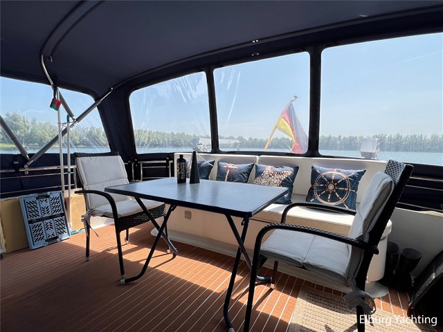 Deze Pacific Allure 148 is van alle gemakken voorzien om ook lang verblijf aan boord comfortabel te maken. Door zijn praktische indeling en uitgebreide techniek aan boord is dit een heerlijk vaar- en leefschip. In het oogspringende eigenschappen van dit schip zijn de 3 hutten indeling met dubbel sanitair, ruime salon met open verbinding naar de dinette/kombuis, rondom nieuw dubbel glas van TopWindows, verwarming via Webasto Air Top (vernieuwd in 2023), hydraulische boeg- en hekschroef en volledig overdekt achterdek voorzien van een 1 jaar oude tent. De derde hut wordt momenteel gebruikt als berging, maar had origineel een 2 x 1 pers. stapelbed. Het interieur is ingetimmerd door de scheepswerf Admiraal te Hasselt. Deze Pacific Allure 148 is voorzien van: halfronde trap naar het vast zwemplateau met afsluitbare deur, geïntegreerde kuipbank met bijbehorende kussens, meevaarbank aan SB-zijde, Beko was-droog combinatie, dieseltanks met mangaten, goed geïsoleerde machinekamer voor minimaal motorgeluid aan dek, radio/cd speler, televisie in salon, klapbare radarbeugel, afneembare zonneschermen rondom salonramen. Momenteel is dit schip op afspraak in over de grens in Duitsland te bezichtigen. Wij maken graag met u een afspraak voor het bezichtigen van dit Pacific motorjacht.