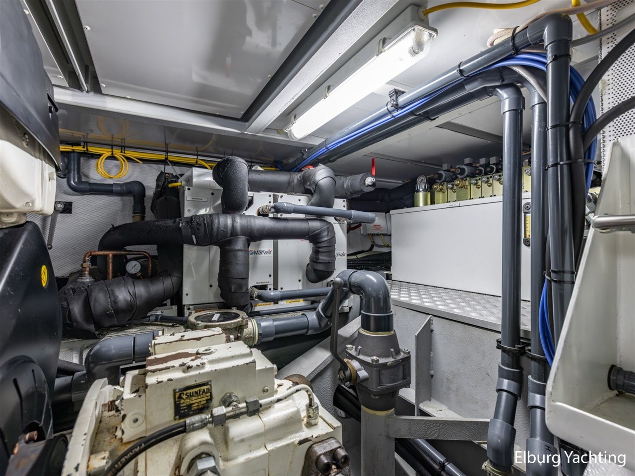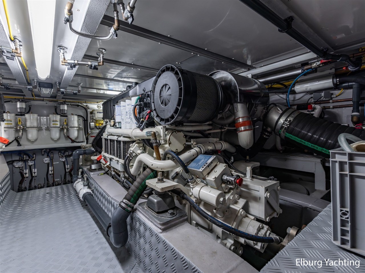 Zeer compleet uitgevoerde Valk Continental 2000 met Naiad Fin Stabilizers. Het jacht is een van de meest recent gebouwde Valk Continental I -series met conventionele aandrijving. Naar de wens van deze tijd is de kombuis in het stuurhuis gepositioneerd, voor optimaal contact tussen stuurpositie, kombuis, dinette en achterdek. Het jacht beschikt over een warm en rustig interieur, elektrisch dakluik boven stuurhuis, 4 x openslaande deuren naar achterdek, stuurhuis gelijkvloers naar achterdek. Het is een uniek ruim schip, welke uitstekend geschikt om op te leven of voor lange vaartochten. De Valk Continental 2000 is voorzien van Kabola HR500-combi centrale verwarming, vloer verwarming, airconditioning, centraal stofzuigsysteem, Maretron scheeps informatie systeem, fuel polisher, wasmachine & droger (Miele), ruitverwarming in stuurhuis, camera systeem buitenom voor aanleggen, automatisch brandblussysteem in machinekamer, Liebherr wijnklimaatkast, 3 x Simrad touch-screen, houten vloer in keuken, vaatwasser (Miele), afval compacter Braan, 3 x dubbel-armige ruitenwisser, Plissés door gehele schip, anti-rammel sloten, raam in spiegel, ruime eigenaarshut met 2 pers. kingsize bed, led tv, kaptafel, designradiator in badkamer, zonwering over achterdek, 5-bladsschroef, r.v.s ankerketting, r.v.s. klapdeuren naar achterdek, r.v.s. tafelpoten, r.v.s. zeereling, r.v.s. bolders, r.v.s. potdeksels, r.v.s. vlaggenstok. Jabsco zoeklicht, Kahlenberg luchthoorns, ledverlichting op traptredes buiten, muggenhoren, 2 x camera’s, vloerverwarming, 1 x Bose “Lifestyle 48” DVD surround system in salon/stuurhuis. 1 x Bose “roommate” in eigenaarshut , 1 x UMTS draadloze internet systeem, incl. WIFI. E-marine” alarm systeem met gecertificeerde GPS-tracker en alarm. 2 x kaapstanders, Muir Wrc3500 ankelier met ca. 100 kg poolanker, buitendouche op zwemplatform incl. heet water, hydraulische kraan voor bijboot Steelhead ES1000 op zwemplatform incl. r.v.s. tender supports. Voor vragen en/of het maken van een afspraak bent u 7 dagen per week van harte welkom bij Elburg Yachting.