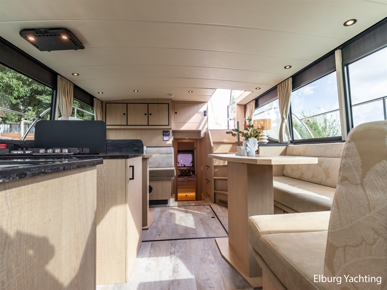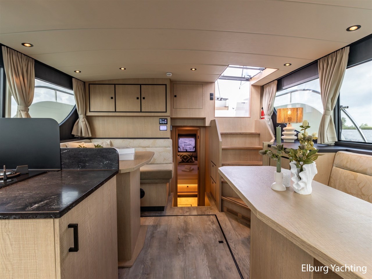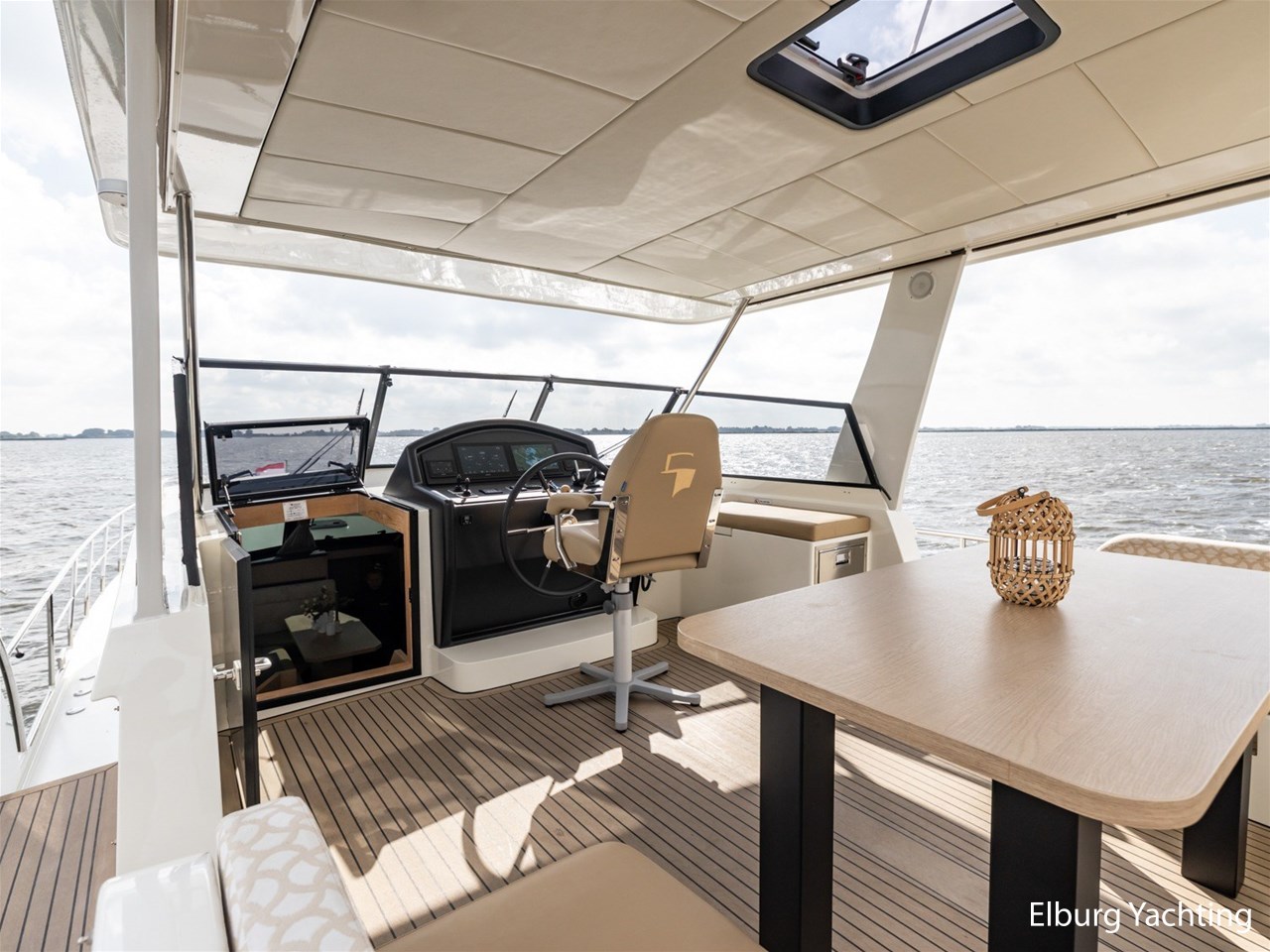 - Geïntegreerd in casco, met draaitrappen naar achterdek