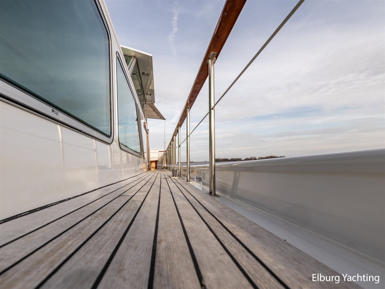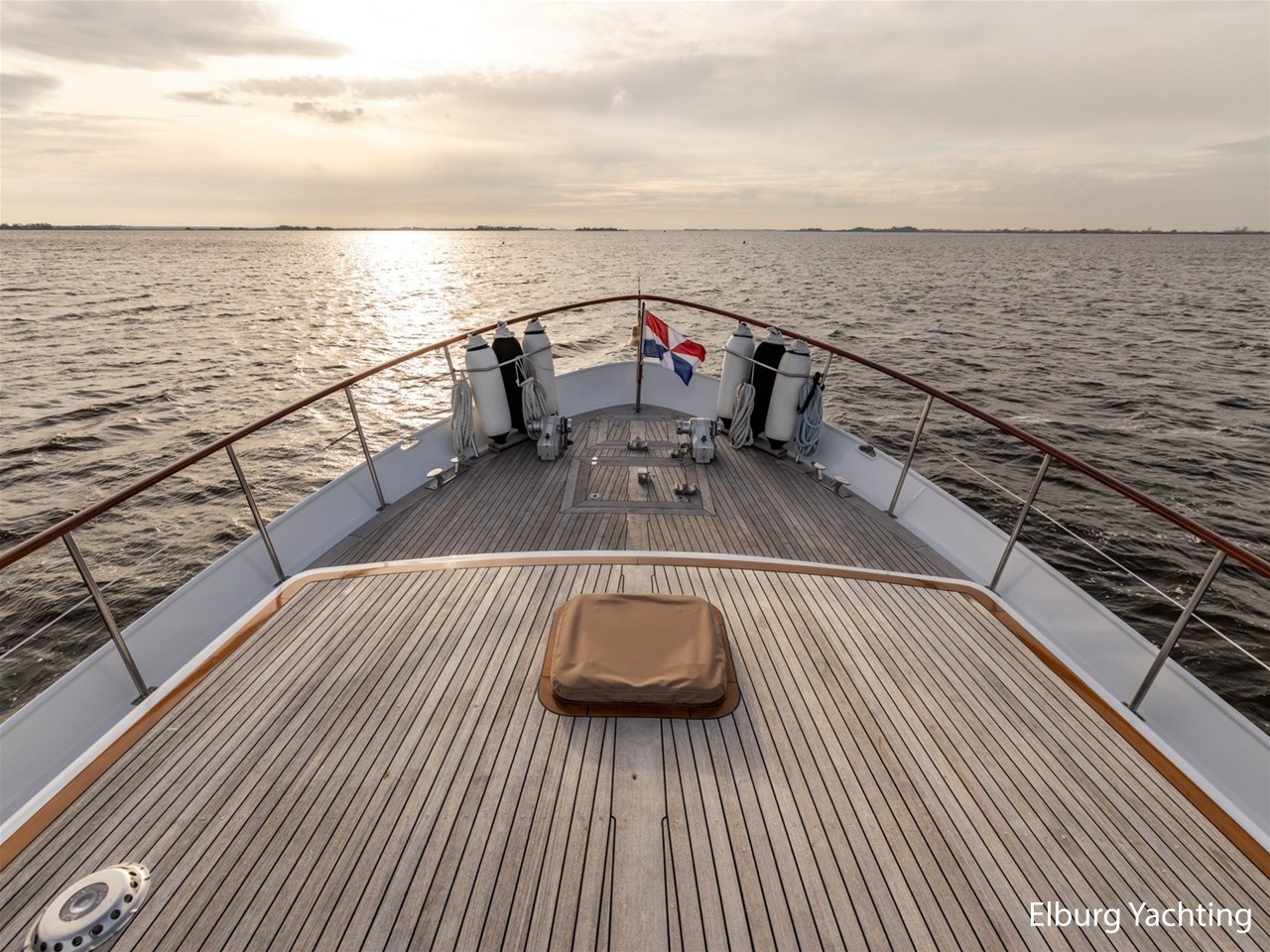 Deze Super van Craft 18.60 gebouwd door de gerenommeerde Jachtwerf Klaassen te Voorschoten, betreft een uiterst goed onderhouden en compleet exemplaar. Het jacht heeft altijd binnen in een botenhuis binnen gelegen en wordt door haar 1e eigenaar aangeboden. Het jacht heeft een groot schuifdak in vast stuurhuis, verwarmde elektrische stuurstoel, 1 x salonraam kan open, ledverlichting door gehele jacht, het jacht is uniek door haar breedte van 5.07 m. Dit creëert een royale binnenruimte en leefruimte in het jacht. Het jacht beschikt over TwinDisc elektrisch koppeling + trolling, Power Comander, RVS zijtrap, 4 zij-ingang in de reling, vaste bank op achtertdek, RVS handgelijders, Mastervolt Power System Control Panel, Victrol Digital Multi Control, Teakhouten reling met RVS septers, mughorren, mughorren voor alle patrijspoorten, veel kastruimte, alle kasten met verlichting, Siemens vaatwasmachine, marmeren topbladen (keuken graniet), luxe eigenaarshut met 4 x patrijspoort, 2 x PTO pomp, radio Zeeland bochtaanwijzer + windsnelheid + windhoek, 3 x 2-armige ruitenwissers, Biminitop over achterdek, veel bergruimte buiten, 8 x rvs bolders, 2 x camerasysteem, RVS stootstrip rondom, hoge machinekamer inlaat, kruiphoogte ca. 4.10 m, stuurstoel + meevaarbank, nieuwe stoffering in 2023, ledverlichting, mughorren, magnetische screens buitenzijde, stroom monitor systeem om de telefoon, AEG 9 kilo nieuwe was/droogmachine, hydraulische besturing, trollingsysteem = 2 á 3 knopen varen, kruissnelheid ca. 8 knopen. gouden kleppendeksel. Het jacht wordt exclusief aangeboden met een bijbehorend boothuis, dat enkel samen met de Super van Craft 18.60 kan worden aangekocht. Voor vragen en/of het maken van een afspraak bent u 7 dagen per week van harte welkom bij Elburg Yachting.