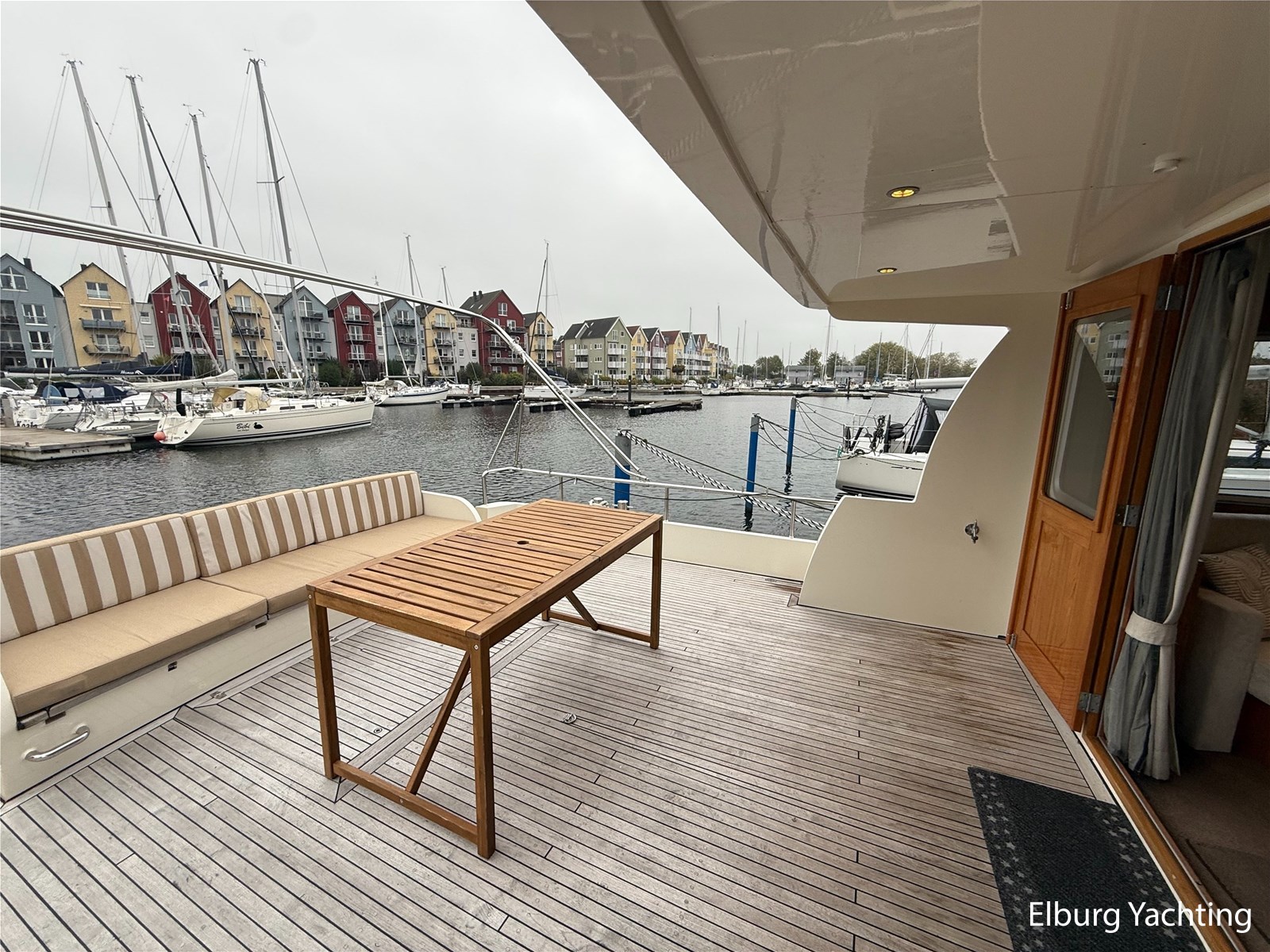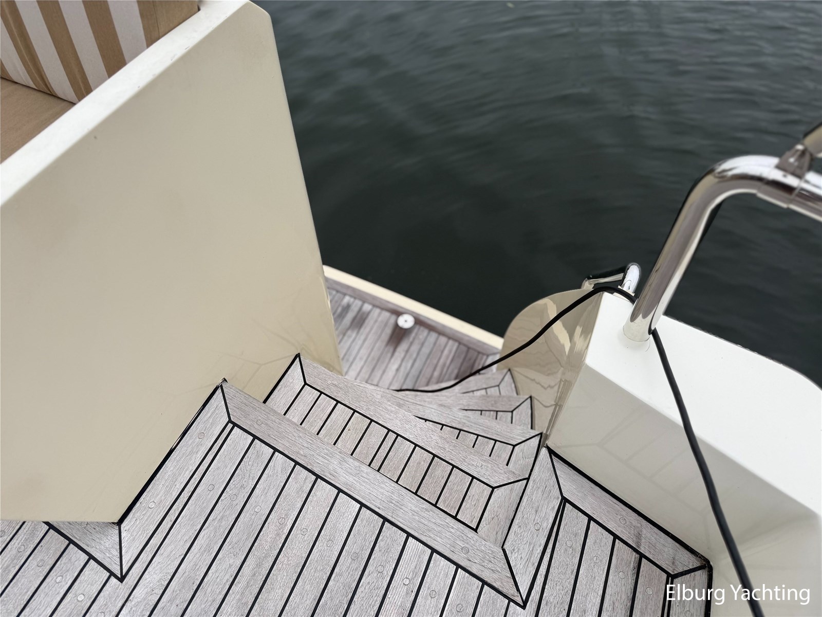 Geïntegreerd + teak dek + r.v.s. zwemtrap + 2 x trap van achterdek naar zwemplatvorm