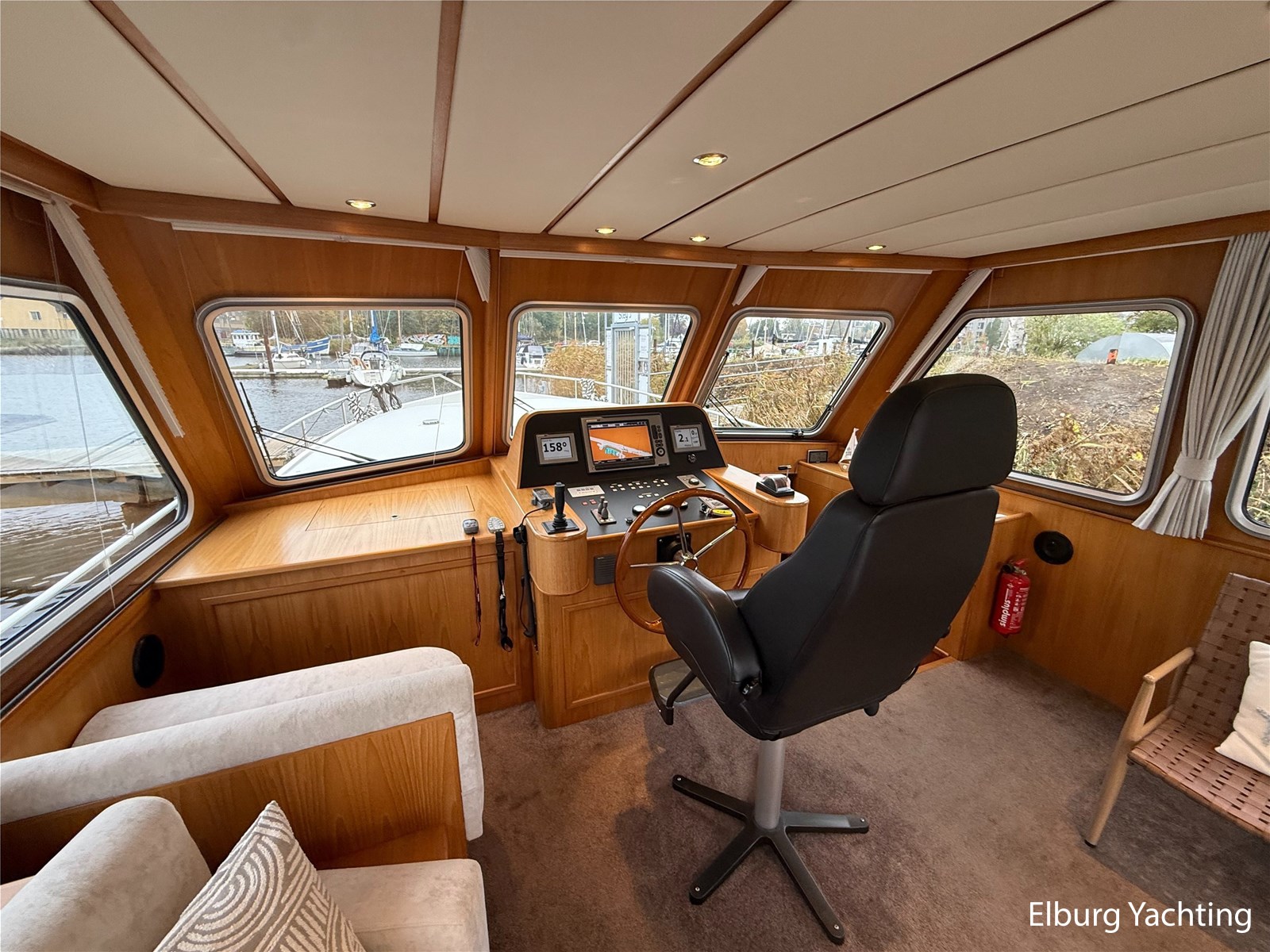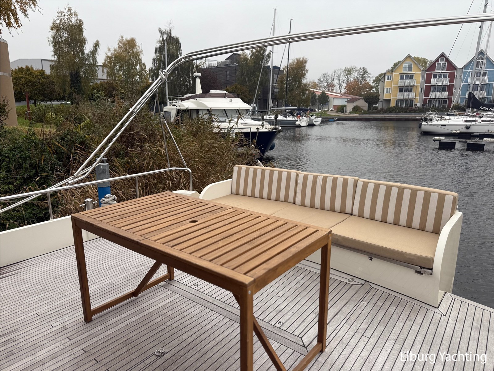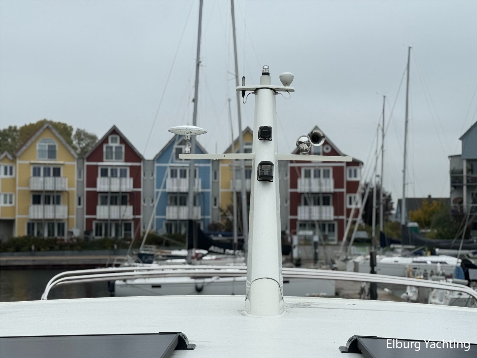 Deze ruime combi kotter 1500 Open Kuip is een schip met veel ruimte boven en beneden deks. Dit schip wordt geleverd met o.a: R.v.s. reling, geïntegreerde bakskisten op achterdek (inclusief teak klep), Hydronautica, 2 x houten openslaande deuren naar open kuip (inclusief dubbel glas), camerasysteem op spiegel (uit te lezen met Raymarine E140W), vlucht/ventilatie luiken, halogeen verlichting, kunststof topbladen in keuken, Siemens vaatwasser, dubbele verschansing, Siemens was/droger combinatie, elektrisch klapbare mast, r.v.s. stootrand, 2 x trap naar zwemplatvorm, lederen stuurstoel, groot achterdek, opslag onder de kuip, r.v.s. zwemtrap tevens te gebuiken als zijladder en ladder naar dak salon.