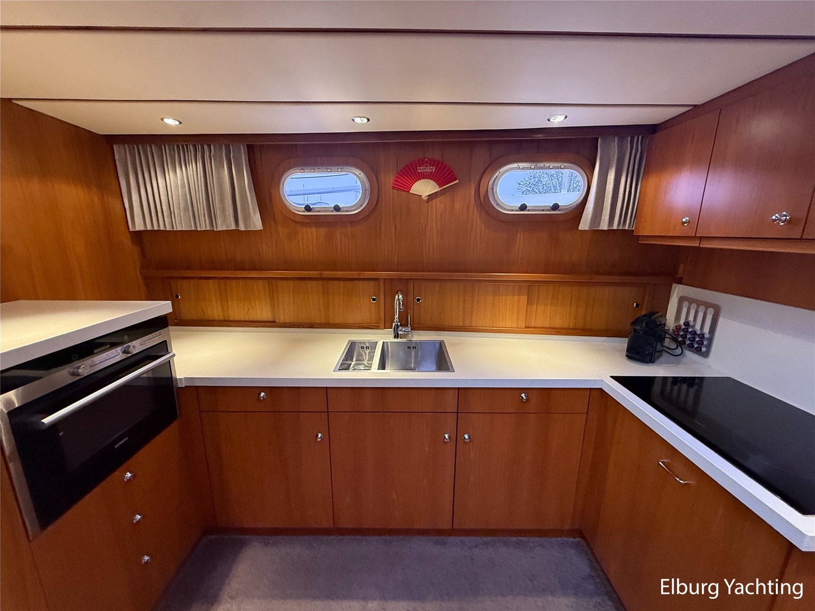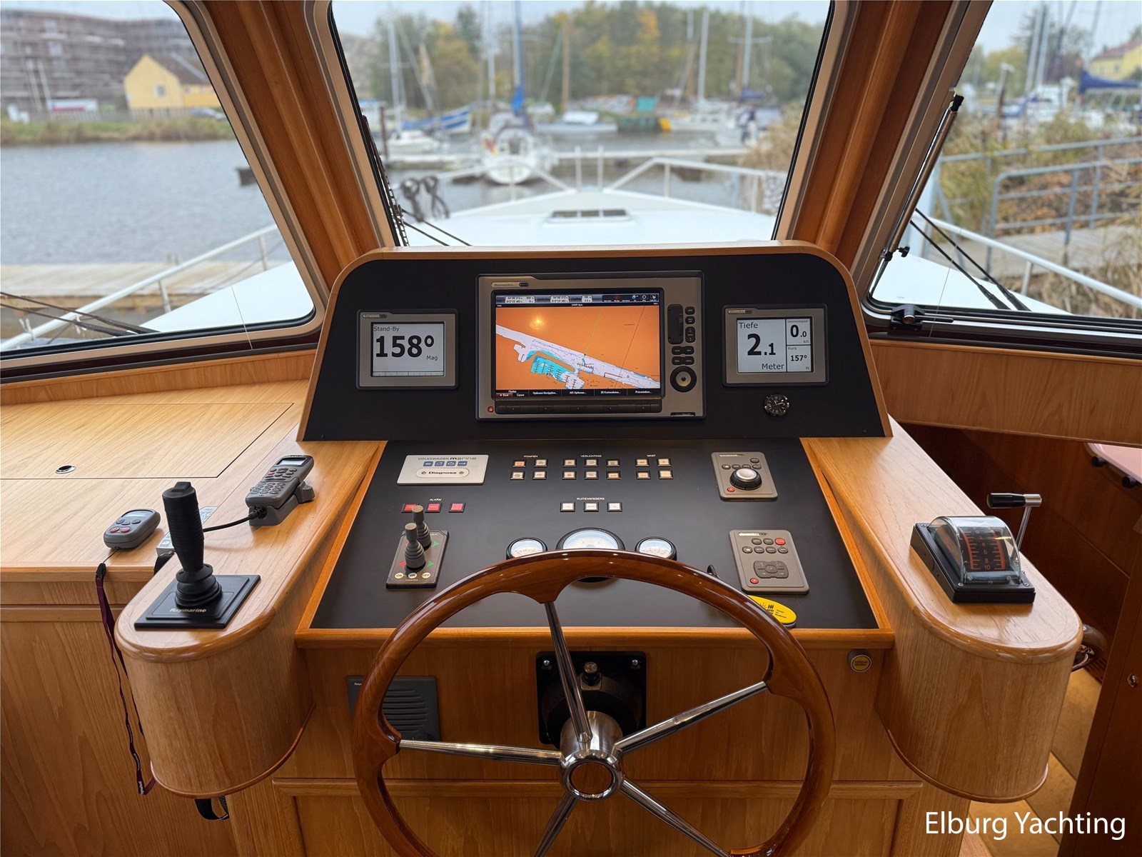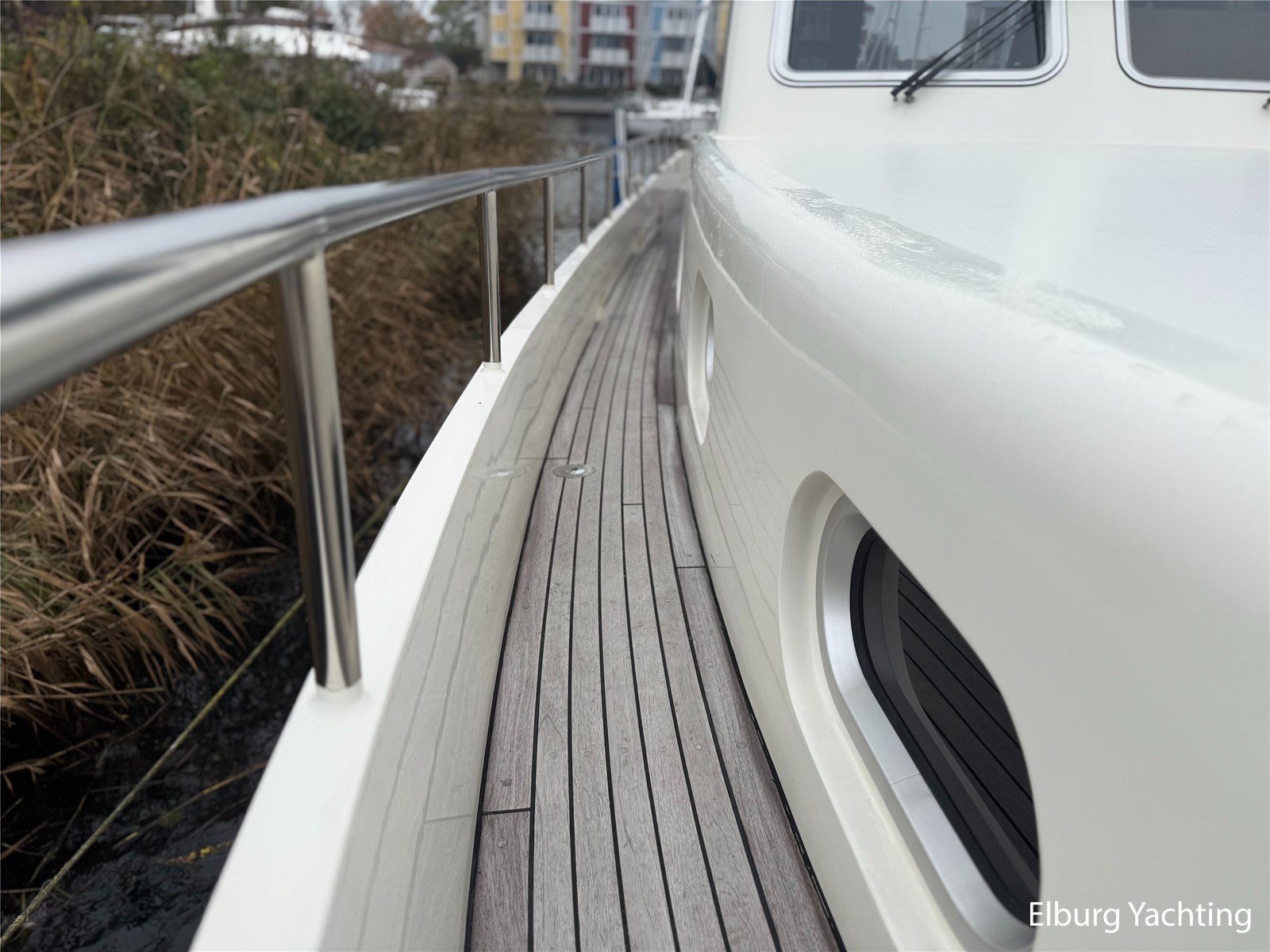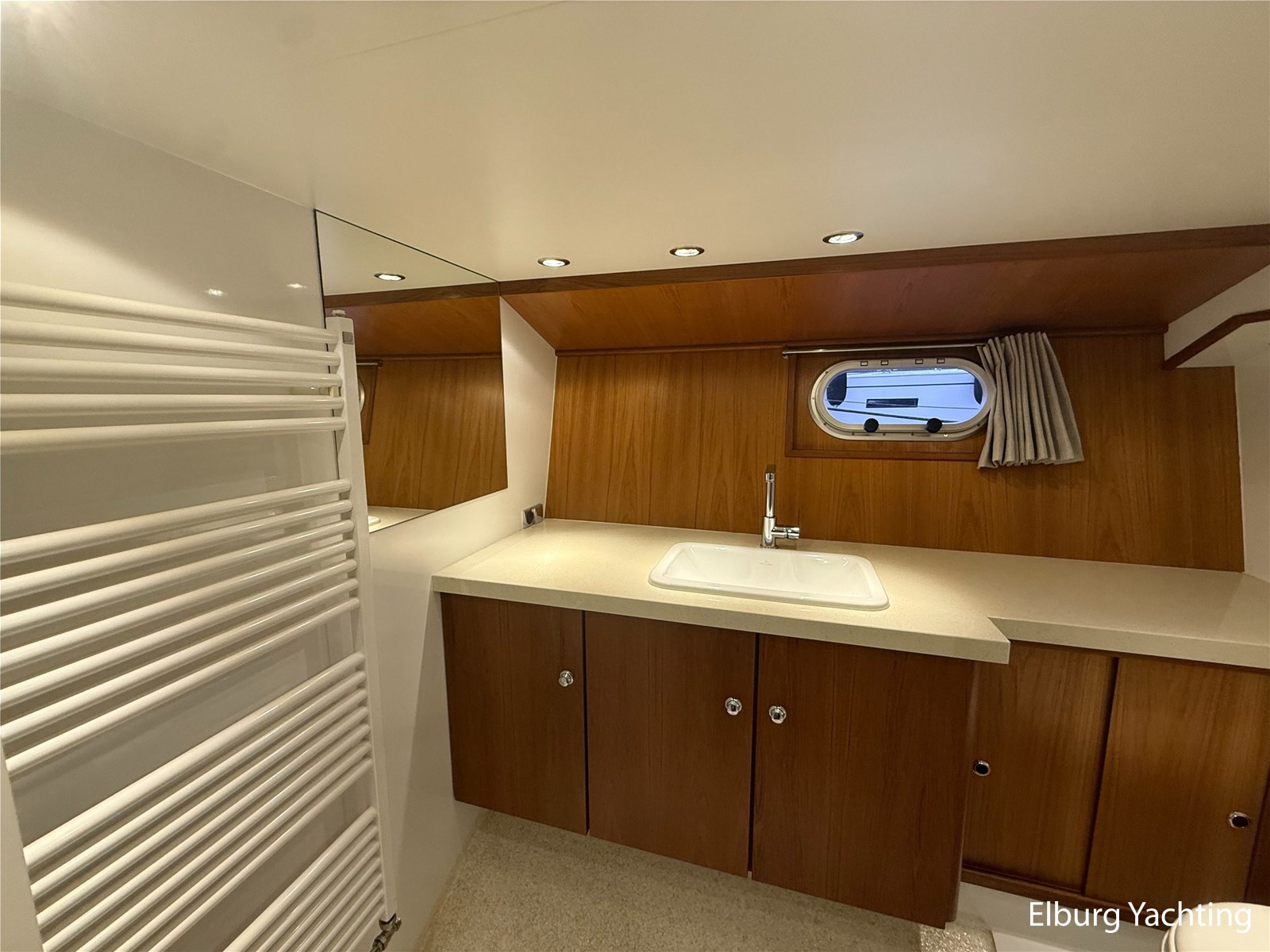 Deze ruime combi kotter 1500 Open Kuip is een schip met veel ruimte boven en beneden deks. Dit schip wordt geleverd met o.a: R.v.s. reling, geïntegreerde bakskisten op achterdek (inclusief teak klep), Hydronautica, 2 x houten openslaande deuren naar open kuip (inclusief dubbel glas), camerasysteem op spiegel (uit te lezen met Raymarine E140W), vlucht/ventilatie luiken, halogeen verlichting, kunststof topbladen in keuken, Siemens vaatwasser, dubbele verschansing, Siemens was/droger combinatie, elektrisch klapbare mast, r.v.s. stootrand, 2 x trap naar zwemplatvorm, lederen stuurstoel, groot achterdek, opslag onder de kuip, r.v.s. zwemtrap tevens te gebuiken als zijladder en ladder naar dak salon.