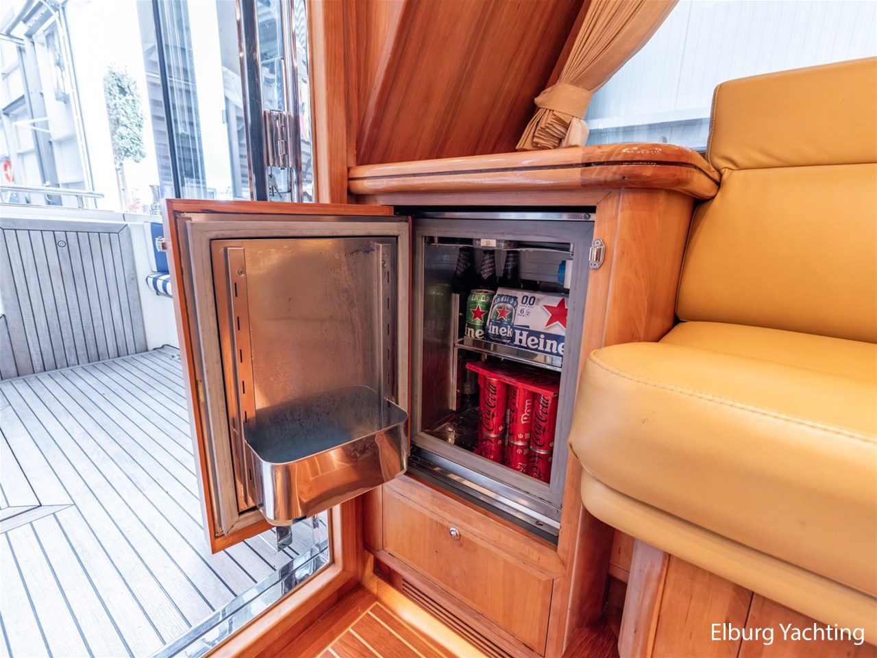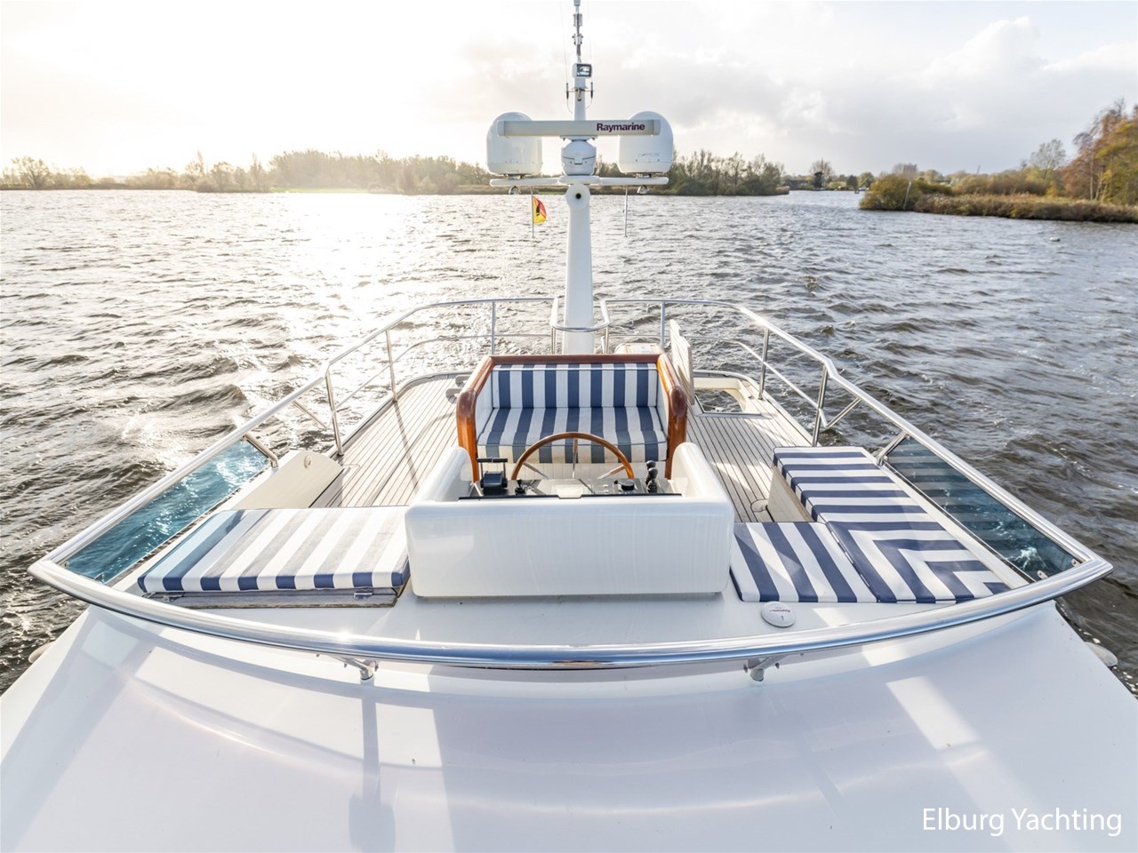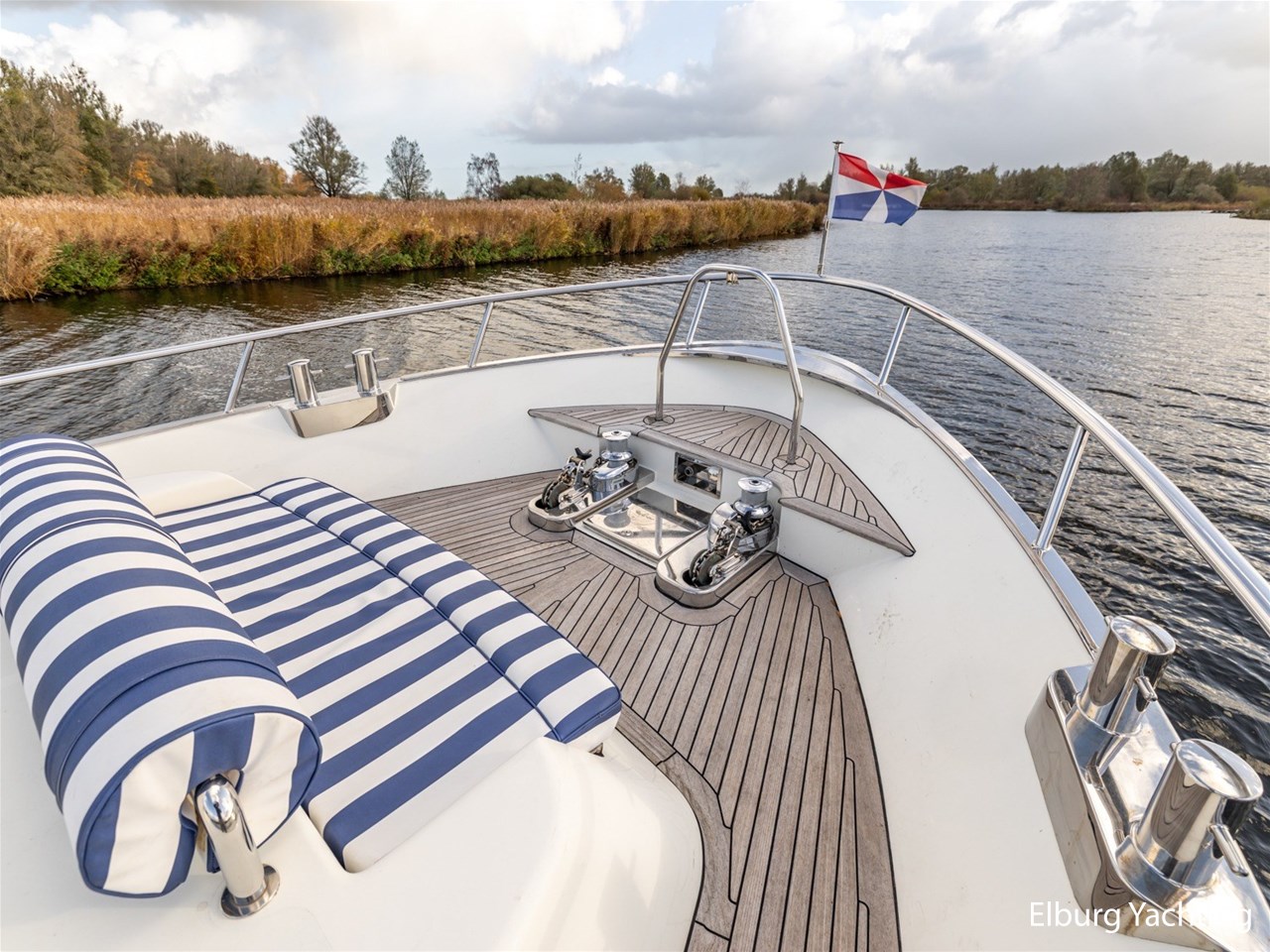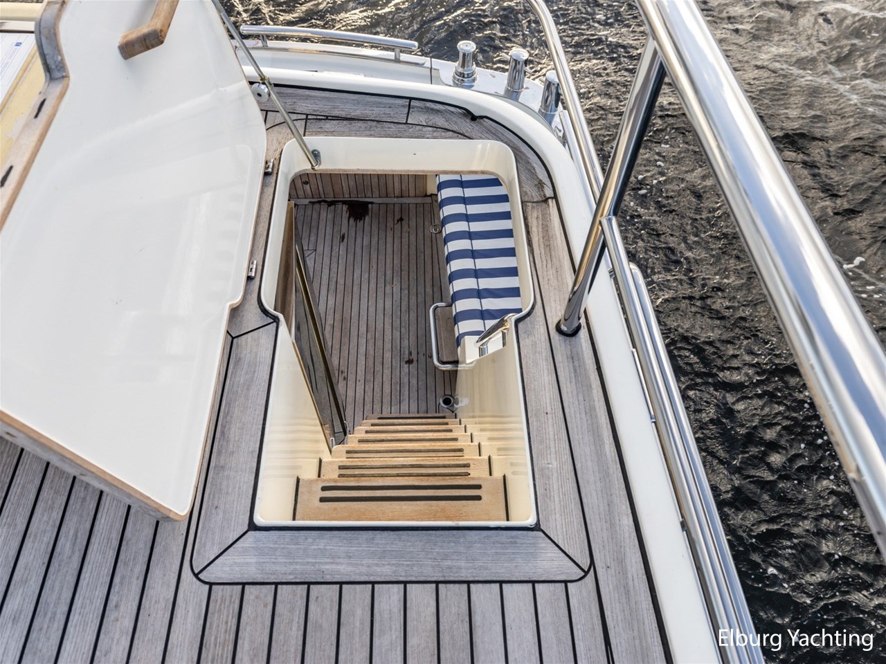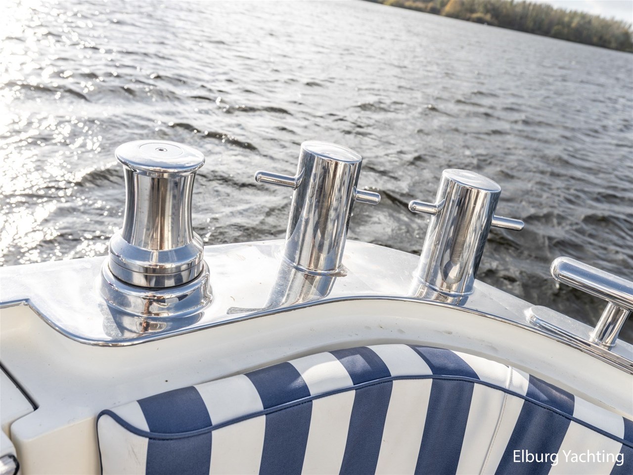 Het jacht beschikt over een hydraulisch uitklapbaar zwemplateau, waardoor deze wordt verlengt en de open kuip nog meer ruimte geeft, ze heeft daarnaast ook een luxe geïntegreerde zitbank op voordek, 4 x RVS sorades voor goede ventilatie in de boot, hydraulisch klapbare mast, 2 x zijdeur (ingang) + 1 x achteringang, luxe stuurstoel, meevaar-dinette naast stuurstand, RVS reling + RVS 'berghout rondom, 3 x dakluik, alle patrijspoorten kunnen open, Alcantrara plafonds, camerasysteem, veel bergruimte buiten, SB +BB elektrische kaapstander, buitenentree machinekamer, ook CV in machinekamer + opbergluik, groot opbergluik in open kuip.