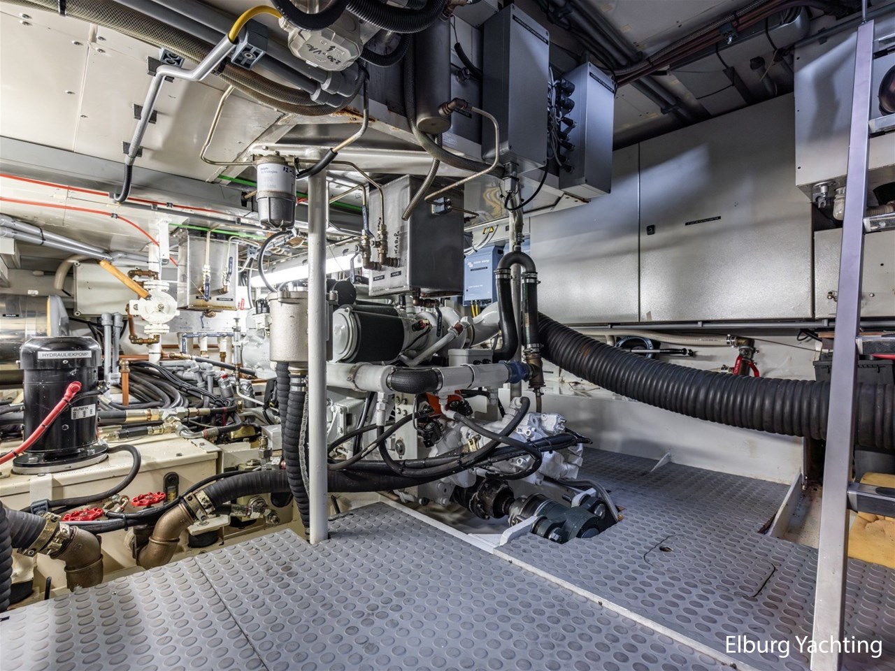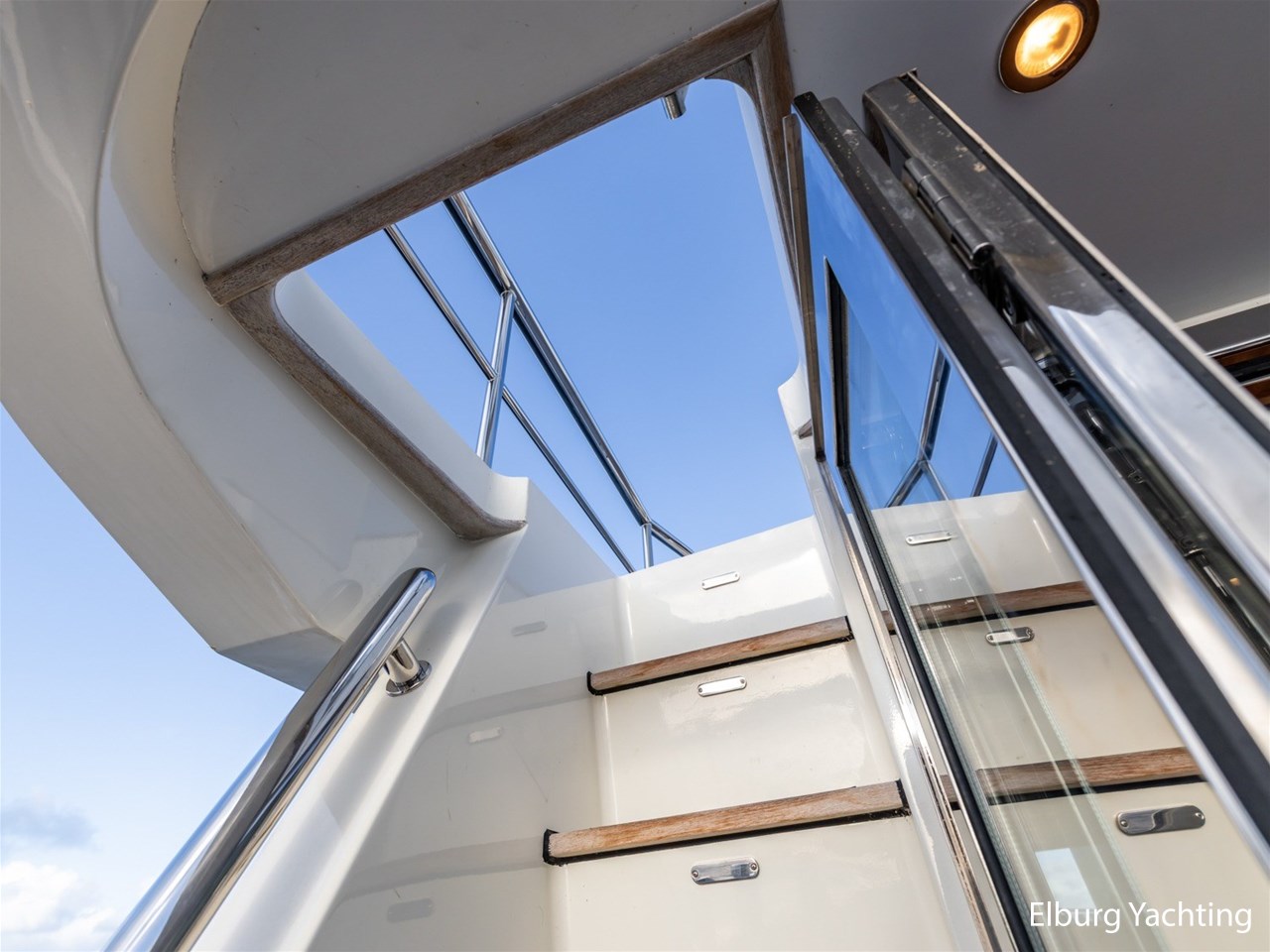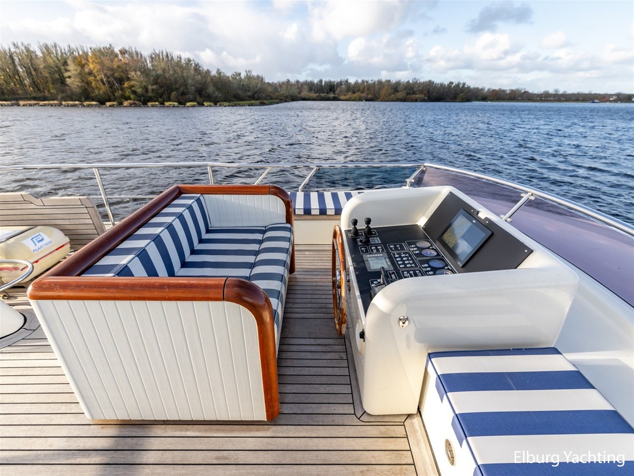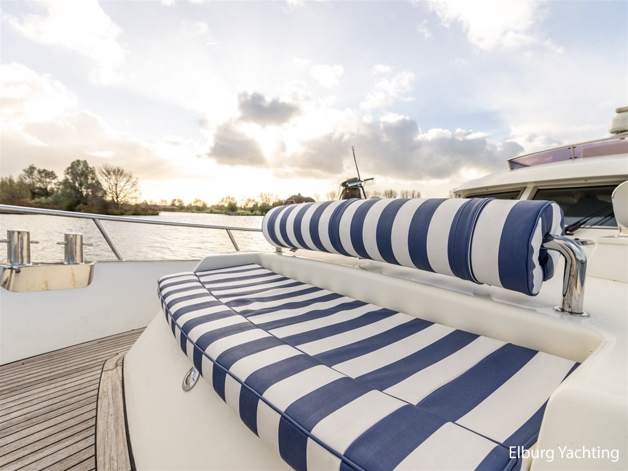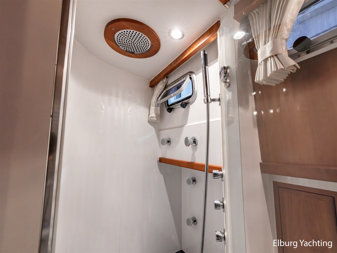 Het jacht beschikt over een hydraulisch uitklapbaar zwemplateau, waardoor deze wordt verlengt en de open kuip nog meer ruimte geeft, ze heeft daarnaast ook een luxe geïntegreerde zitbank op voordek, 4 x RVS sorades voor goede ventilatie in de boot, hydraulisch klapbare mast, 2 x zijdeur (ingang) + 1 x achteringang, luxe stuurstoel, meevaar-dinette naast stuurstand, RVS reling + RVS 'berghout rondom, 3 x dakluik, alle patrijspoorten kunnen open, Alcantrara plafonds, camerasysteem, veel bergruimte buiten, SB +BB elektrische kaapstander, buitenentree machinekamer, ook CV in machinekamer + opbergluik, groot opbergluik in open kuip.