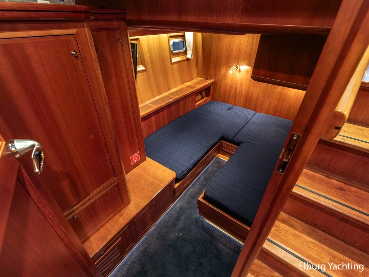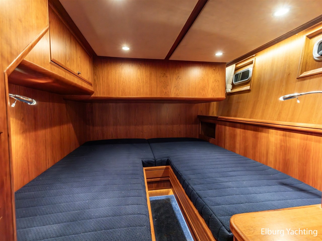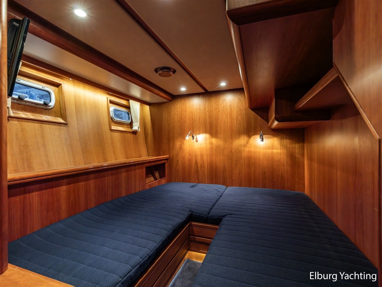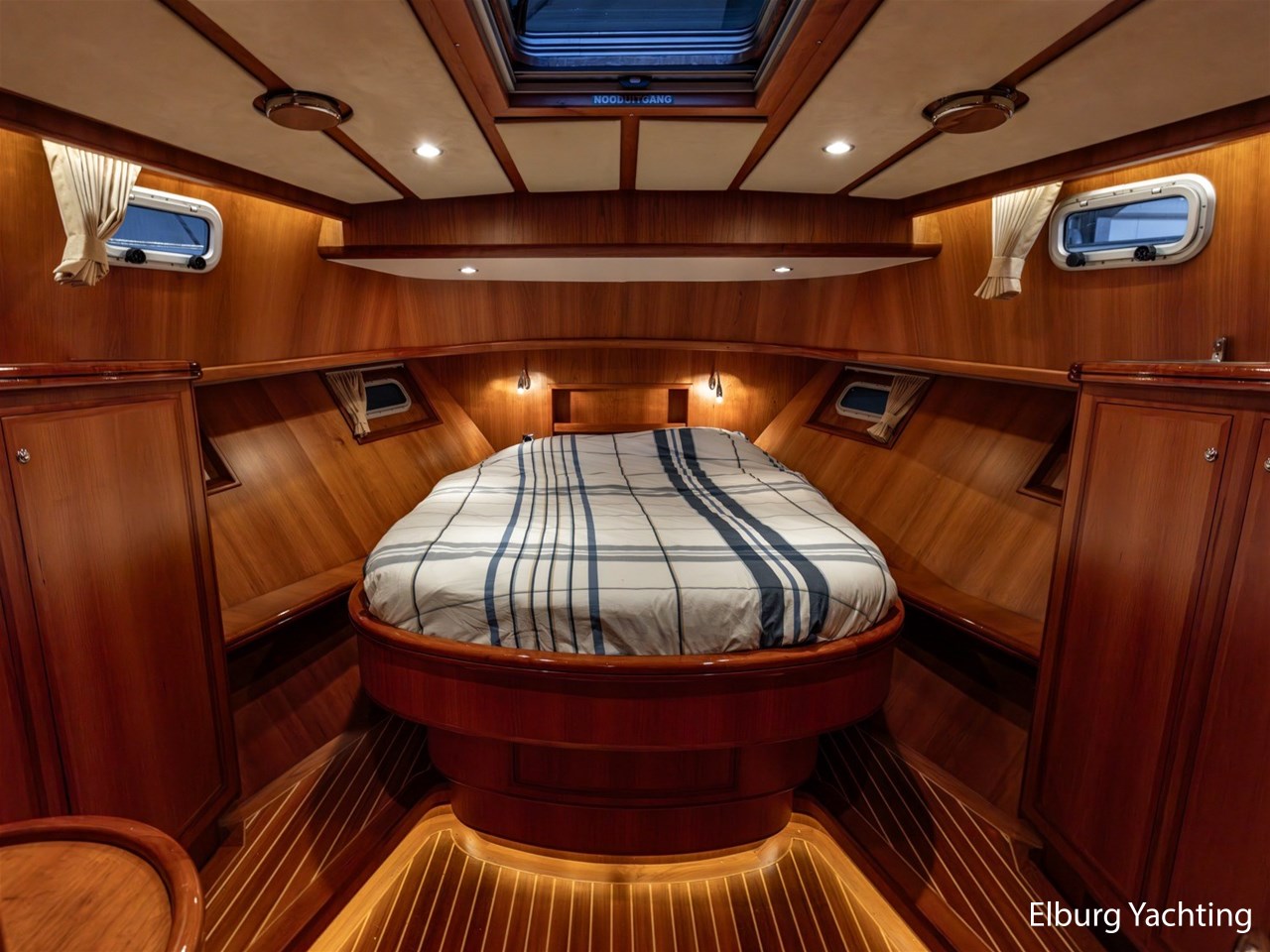 - 6 x vast (1 x 2 pers. vrijstaand in voorhut + 2 x 1 pers. in SB-hut + 2 x 1 pers in BB-hut)