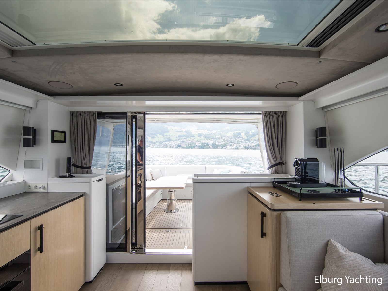 Deze Steeler 56S combineert prestatie met elegantie. Het prachtige ontwerp is getekend door de gerenommeerde Italiaanse ontwerper Vittorio Pieroni en het jacht is door de welbekende werf Steeler Yachts tot een waar kunststuk op het water gevormd. Ze heeft een prachtige lijn en is gebouwd van Aluminium. Aangedreven door twee Volvo Penta D11 - 725 pk sterke motoren behaalt ze een topsnelheid van ca. 26 knopen en een comfortabele kruissnelheid van ca. 18 knopen met een range van ca. 380 nautische mijlen. Elk element aan boord is gemaakt met het oog op comfort en praktisch gebruik. De royale ramen in de salon geven veel natuurlijk licht. Het dak in de salon is hefbaar gemaakt waardoor er tijdens de zonnige dagen een fijne natuurlijke luchtstroom gecreëerd kan worden. Tevens is het dak voorzien van een Webasto schuifdak. Verdere unieke kenmerken van deze Steeler 56S zijn het custom made Alcantara dashboard, Maecvo luchtontvochtiger, stoomoven, prachtige buitenkeuken, Yachtcontroller afstandsbediening, Masscoat rompisolatie, in hoogte verstelbare stuurstoel, Kabola centrale (vloer)verwarming met Webasto climate control en airconditioning, hyraulisch neerlaatbare mast, tendergarage (excl. tender), Flexiteek rondom, hydraulisch zwemplateau, zijdeur aan stuurboord. Voor vragen en/of het maken van een afspraak bent u 7 dagen per week van harte welkom bij Elburg Yachting.